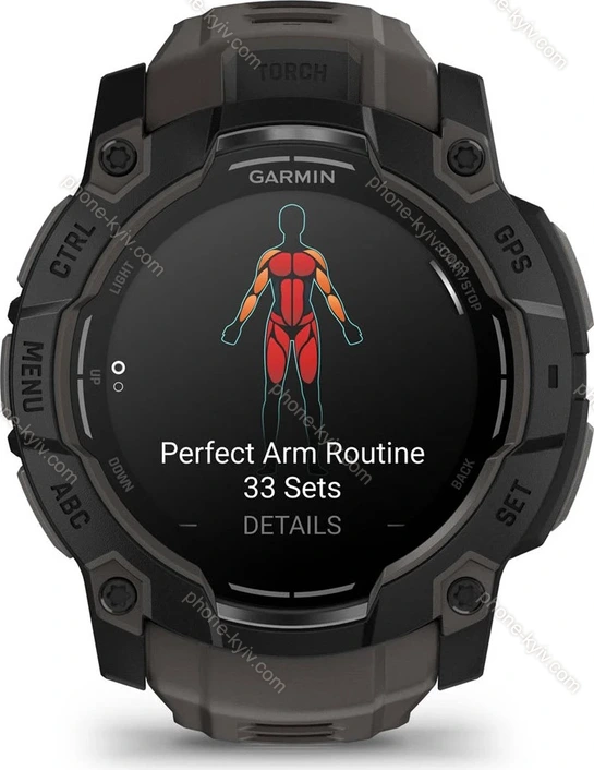 Екран 1.3", 416x416 пікс., кольоровий дисплей, OLED, круглий  ОС власна  Пам'ять пристрою 4GB  Інтерфейси Bluetooth, ANT+  Вимірювання пульсу вбудовано (оптичний), через грудний ремінь (не в комплекті)  Функції вимірювання час, секундомір, зворотний відлік, крокомір, лічильник сходів, плавальні рухи, швидкість, відстань, лічильник кіл, моніторинг сну, моніторинг циклу, частота серцевих скорочень, кисень у крові, споживання калорій, температура, висотомір, тиск повітря  Функції часові пояси, дата, календар, будильник, прогноз погоди, сигнал бездіяльності, функція оплати, функції для гольфу, керування музикою (iOS, Android), сповіщення про повідомлення (iOS, Android), сповіщення про дзвінок (iOS, Android)  Датчики прискорення, гіроскоп, барометр, термометр  Навігація так, компас, GPS, GLONASS, Galileo  Сумісність Android, iOS  Джерело живлення акумуляторна батарея  Час роботи 24 дн., 40h (GPS)  Матеріал корпусу нержавіюча сталь, пластик  Матеріал браслета силікон  Колір корпусу чорний  Колір ремінця сірий  Розміри  50x14.4 мм  Ширина браслета 26 мм  Довжина (браслет) 14.10-21.30 см  Вага 59 г.  Додатково водонепроникність (до 100 м. водяного стовпа), emergency function, змінний браслет, сумісність із датчиком каденсу, ліхтарик   |