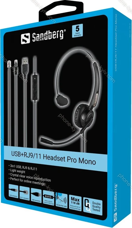 Навушники Sandberg USB+RJ9/11 гарнітура Pro Mono купити Київ: гарна ціна, безкоштовна доставка, Україна |