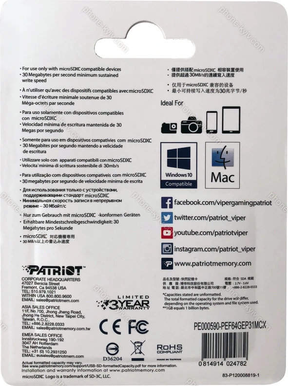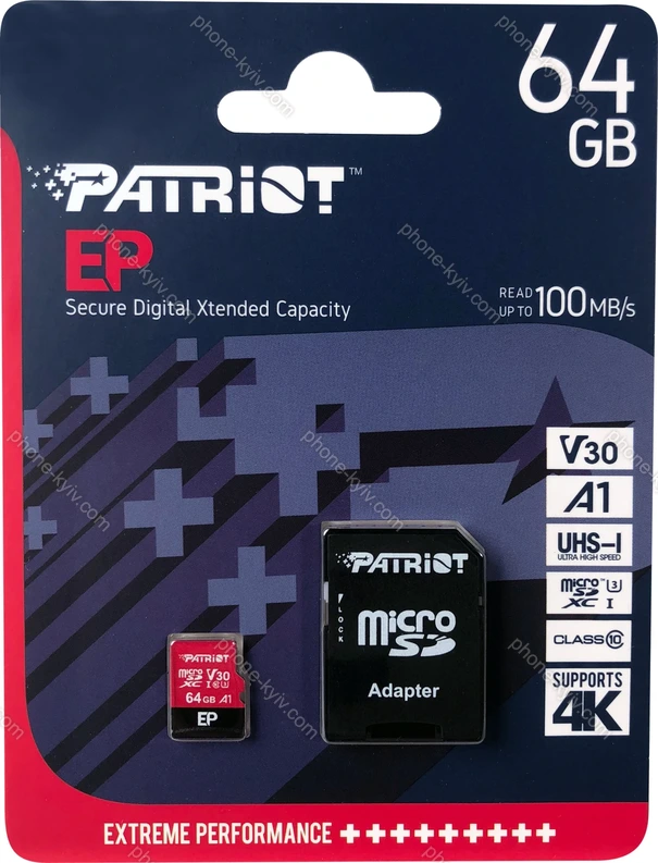| Карта пам'яті Patriot EP R90 microSDXC 64GB Kit, UHS-I U3, A1, Class 10 |  | Осінній розпродаж 2025: 20%, економія: 54 грн.