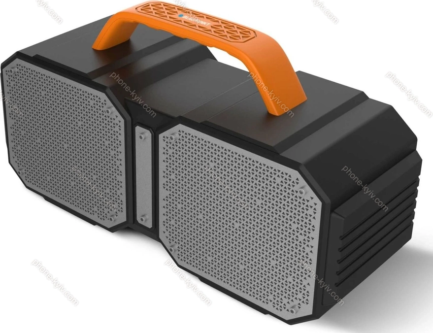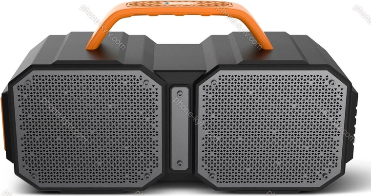 Потужність 30W RMS  Тюнер FM  Роз'єми AUX вхід (роз'єм 3,5 мм), USB-A, картка пам'яті (microSD)  Зв'язок Bluetooth 4.2  Живлення літій-іонний акумулятор (4000 мА·год), USB micro-B  Час роботи 6 годин  Функції водонепроникність (IPX5), гучний зв'язок, функція зарядки (USB-A)  Колір сірий, помаранчевий  Розміри 322x170x110 мм (ШxВxГ)  Вага 2.01kg   |