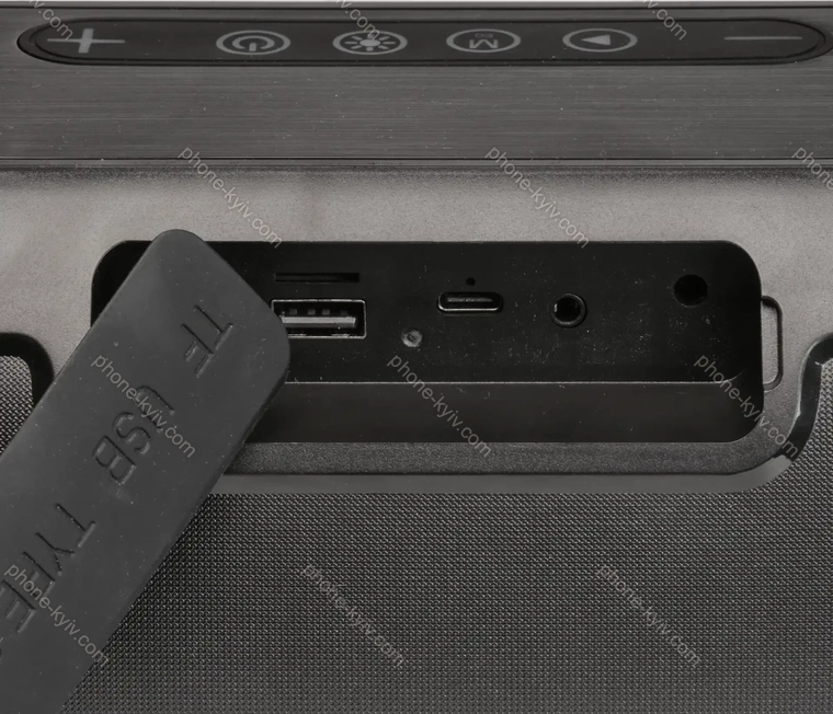Потужність 20W RMS, 200 Вт. (максимальна)  Тюнер FM  Роз'єми AUX вхід (роз'єм 3,5 мм), USB-A, картка пам'яті (microSD)  Зв'язок Bluetooth 5.0  Живлення літій-іонний акумулятор (2400 мА·год), USB-C  Час роботи 4 години  Функції водонепроникність (IPX4), стерео-спарювання, світлові ефекти  Колір чорний  Розміри 350x150x190 мм (ШxВxГ)   |